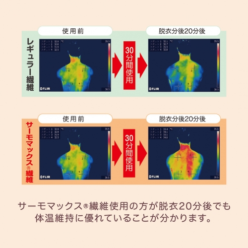 サーモマックス繊維使用の方が体温維持に優れています。
